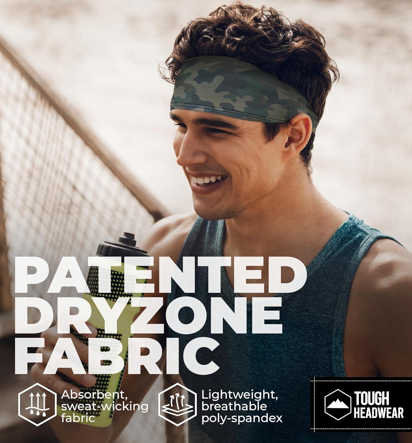 Tough Headwear Sport Headbands for Men - Workout Headbands for Women - Running Headband -Tennis Athletic Sweatband(Military Camo)