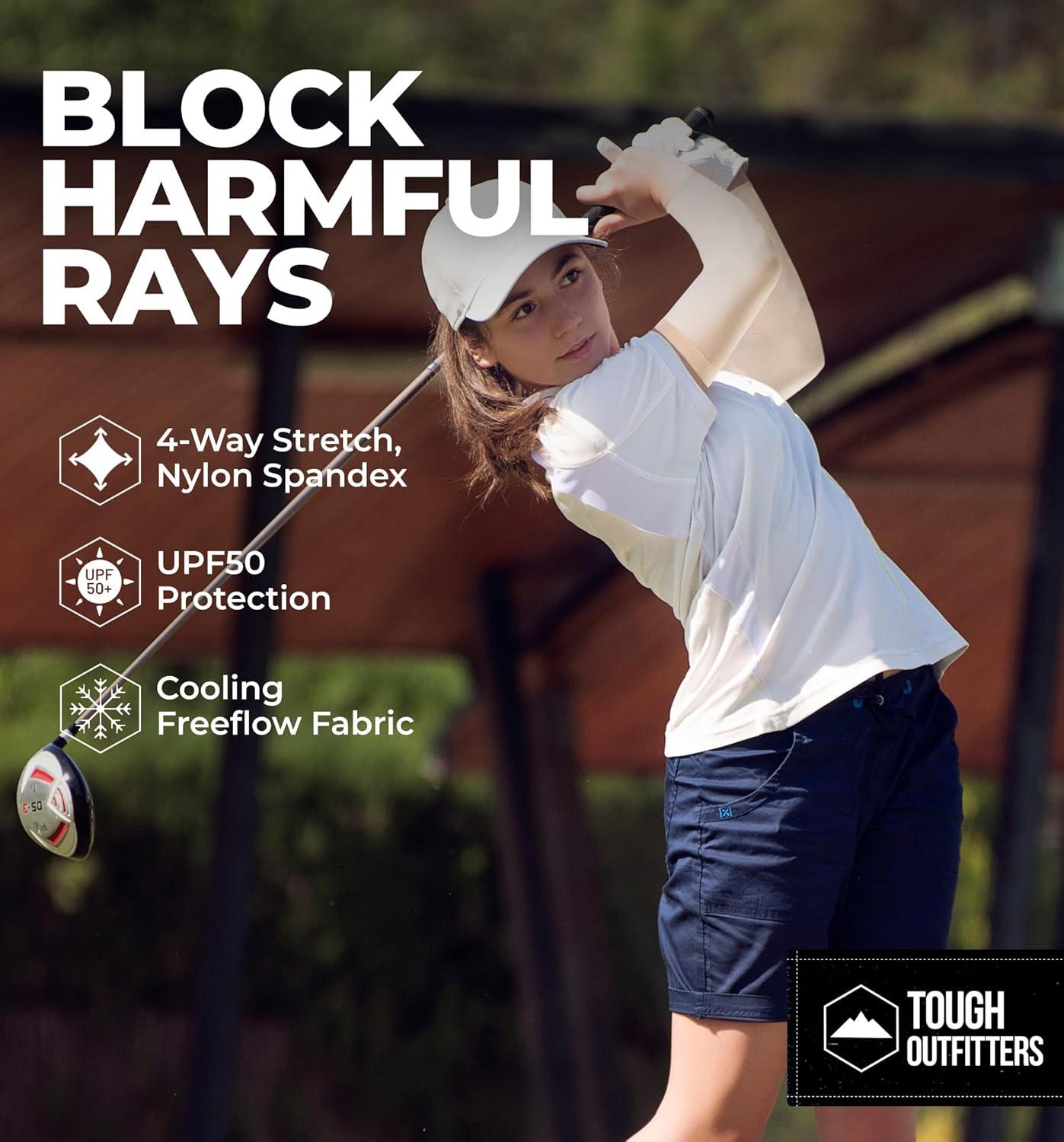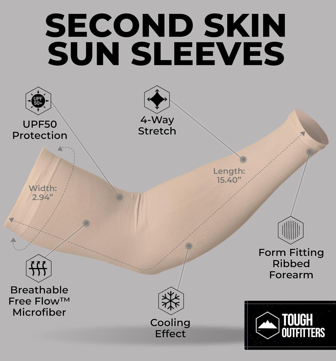 Tough Outdoors Sun Protection Sleeves – UV Arm Sleeves for Men and Women – Golf Cooling Arm Sleeves – Baseball Sun Sleeves(Beige)