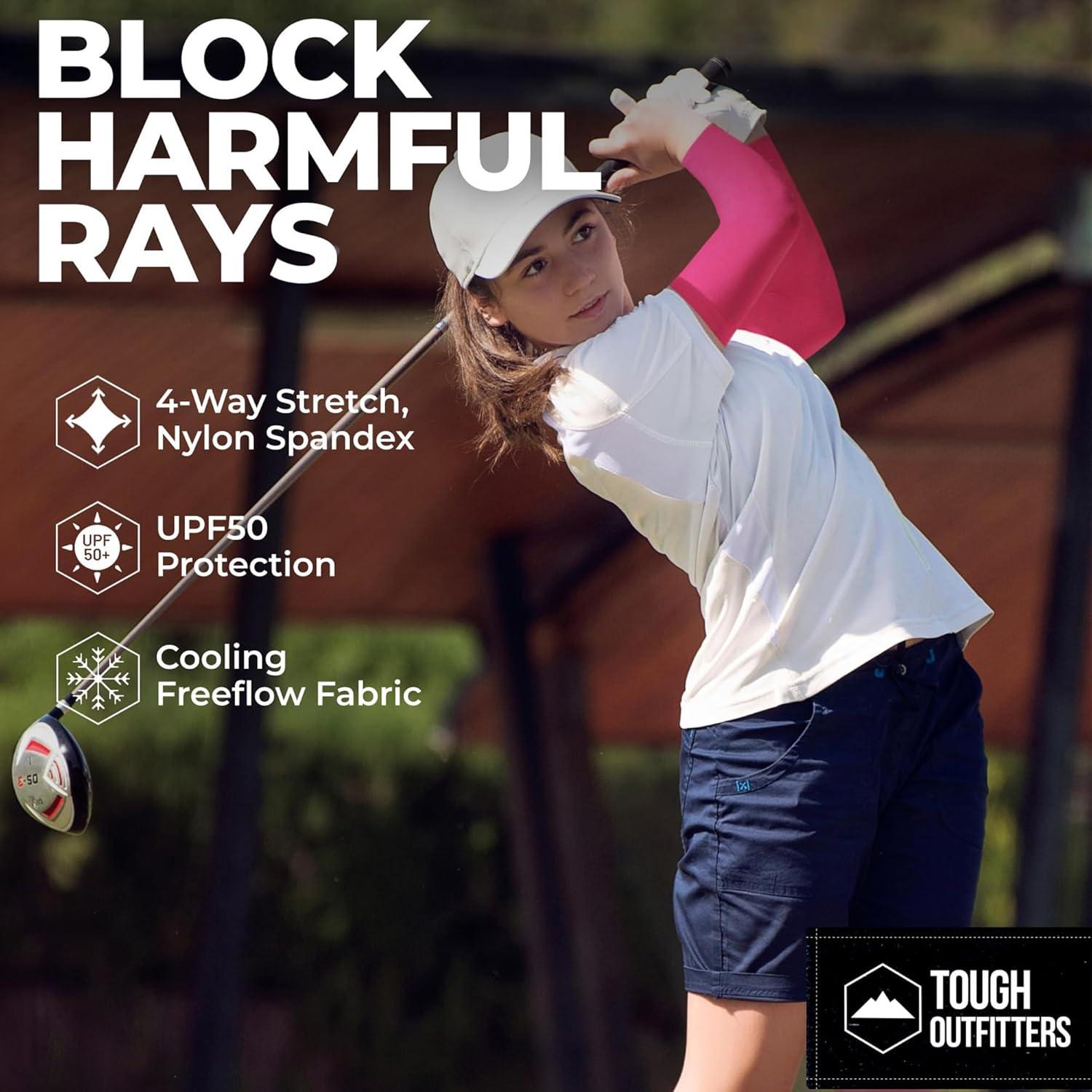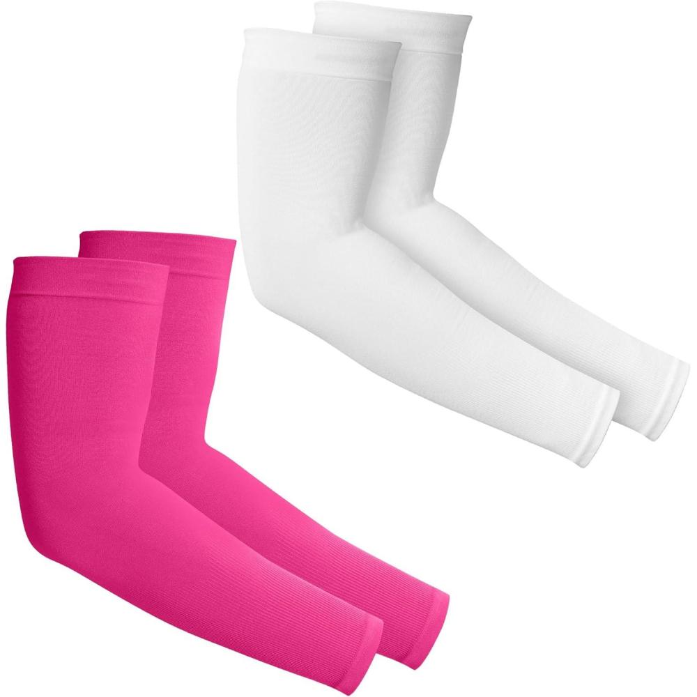 Tough Outdoors Sun Protection Sleeves - UV Arm Sleeves for Men and Women - Golf Cooling Arm Sleeves - Baseball Sun Sleeves(White & Pink)