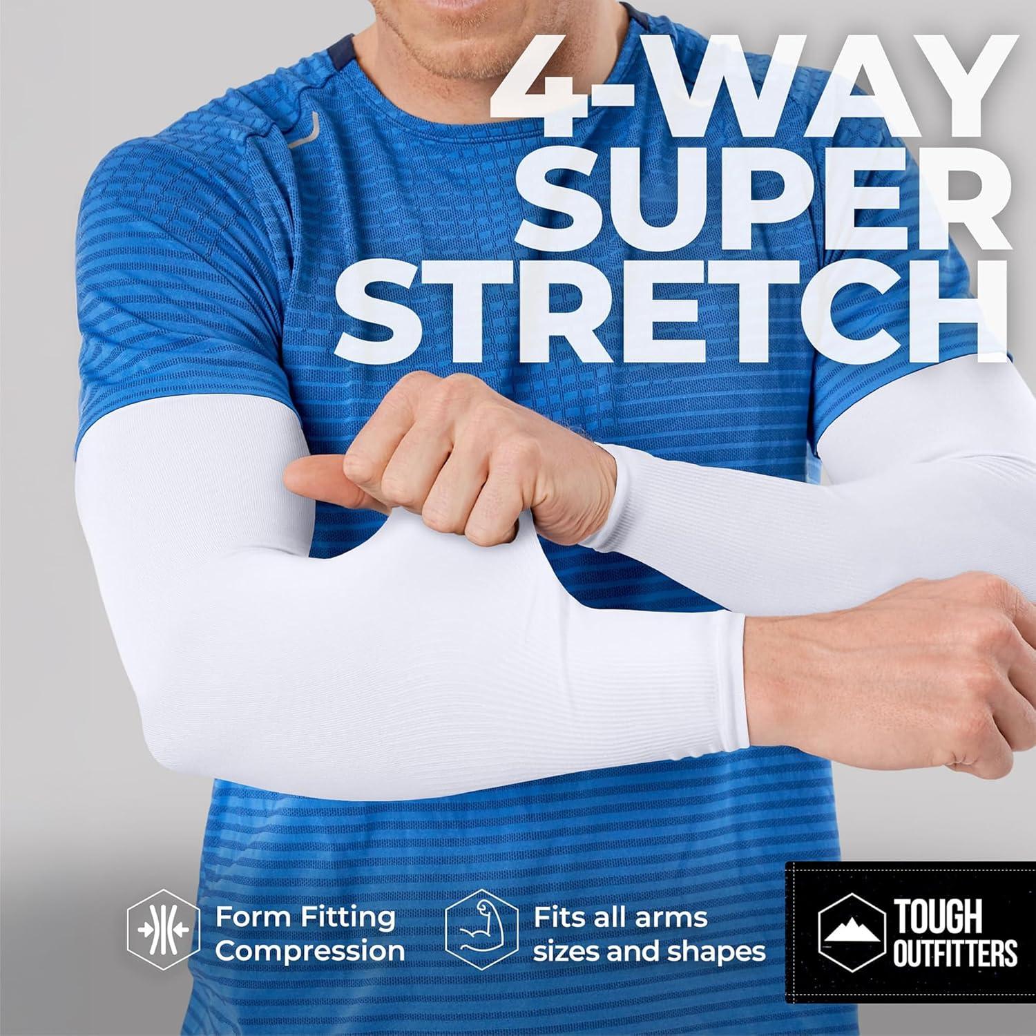 Tough Outdoors Sun Protection Sleeves – UV Arm Sleeves for Men and Women – Golf Cooling Arm Sleeves – Baseball Sun Sleeves(White)